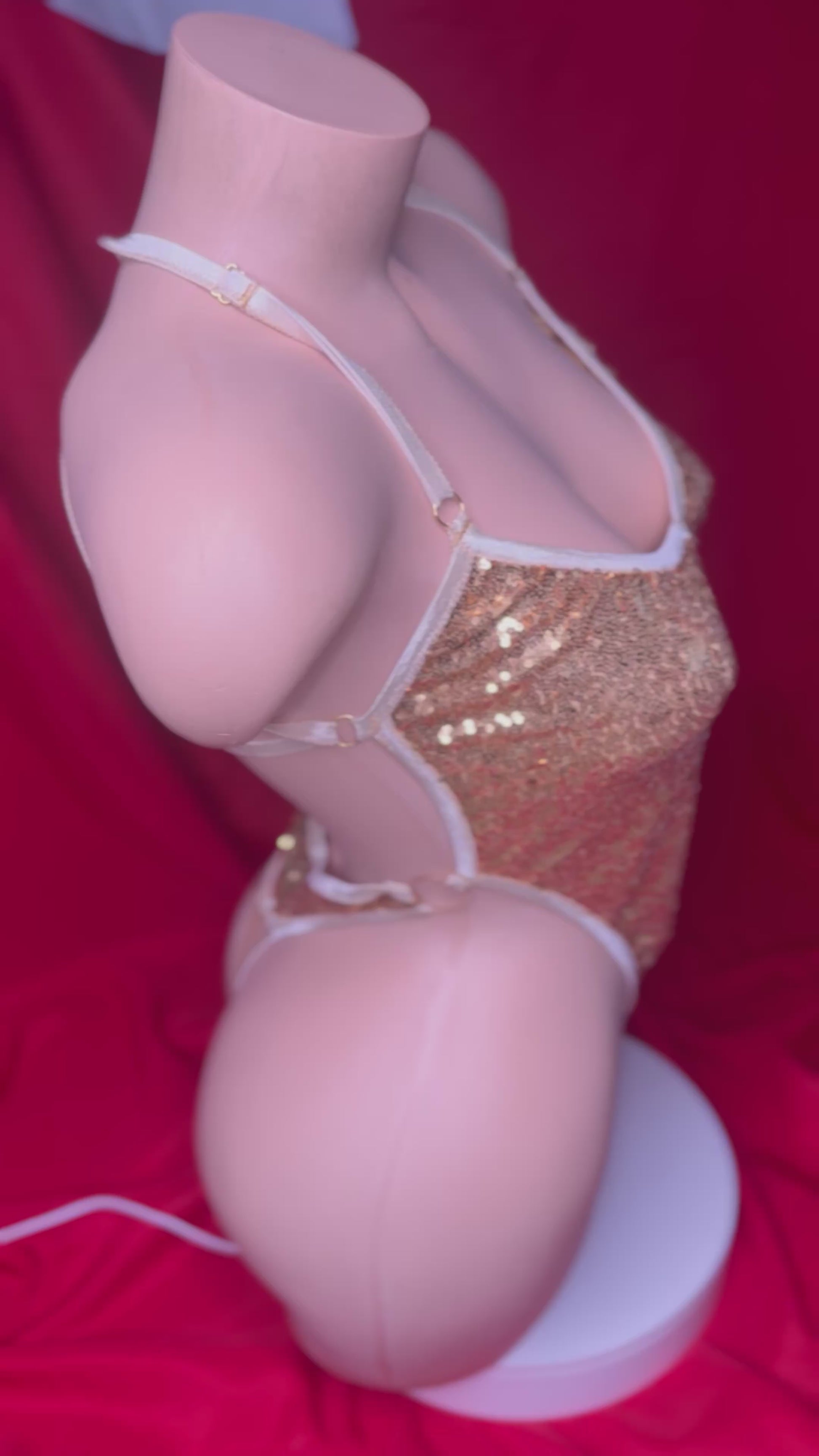 Turn heads and own the spotlight with this stunning, high-cut sequin bodysuit. Designed for those who love a bold, feminine aesthetic, this piece combines a shimmering gold and copper textured finish with a sleek, flattering silhouette.